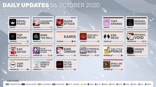 The goal of this spreadsheet is to list all fest in the EXO ficdom, whether they are still active, have been dropped or discontinued.